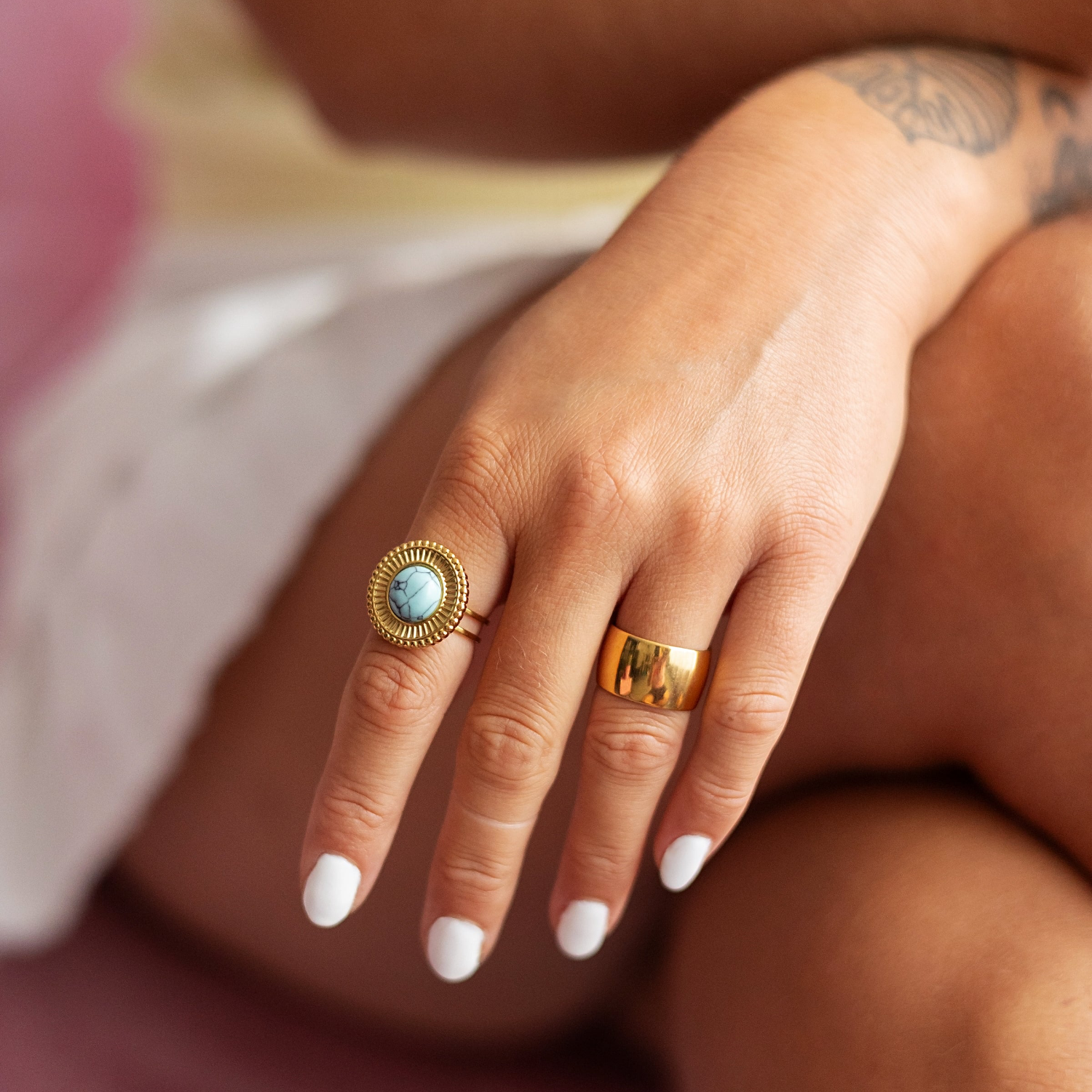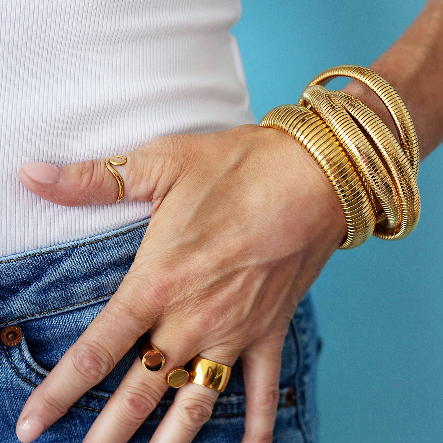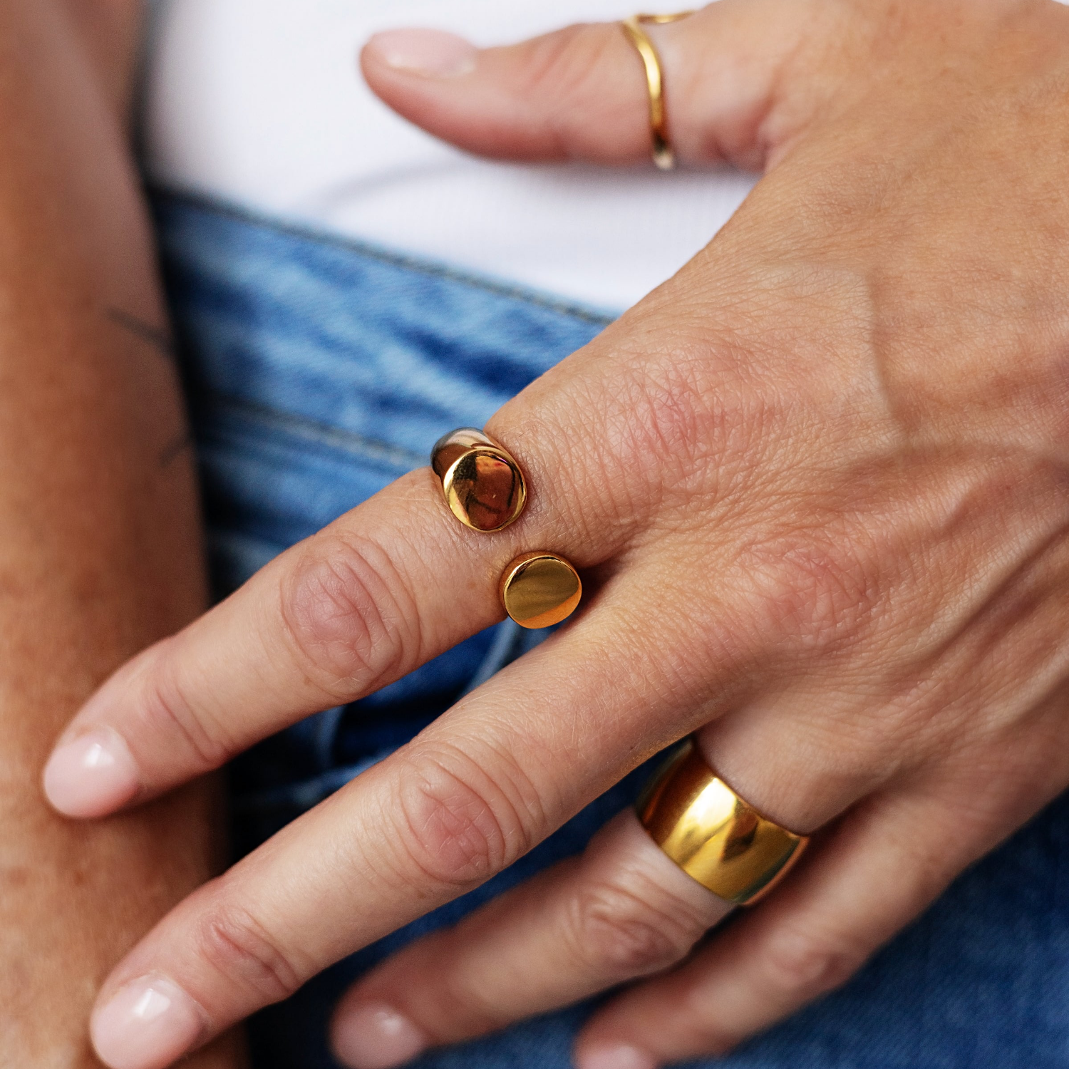 Bague unie au design minimaliste et audacieux, parfaite pour un look moderne et affirmé.