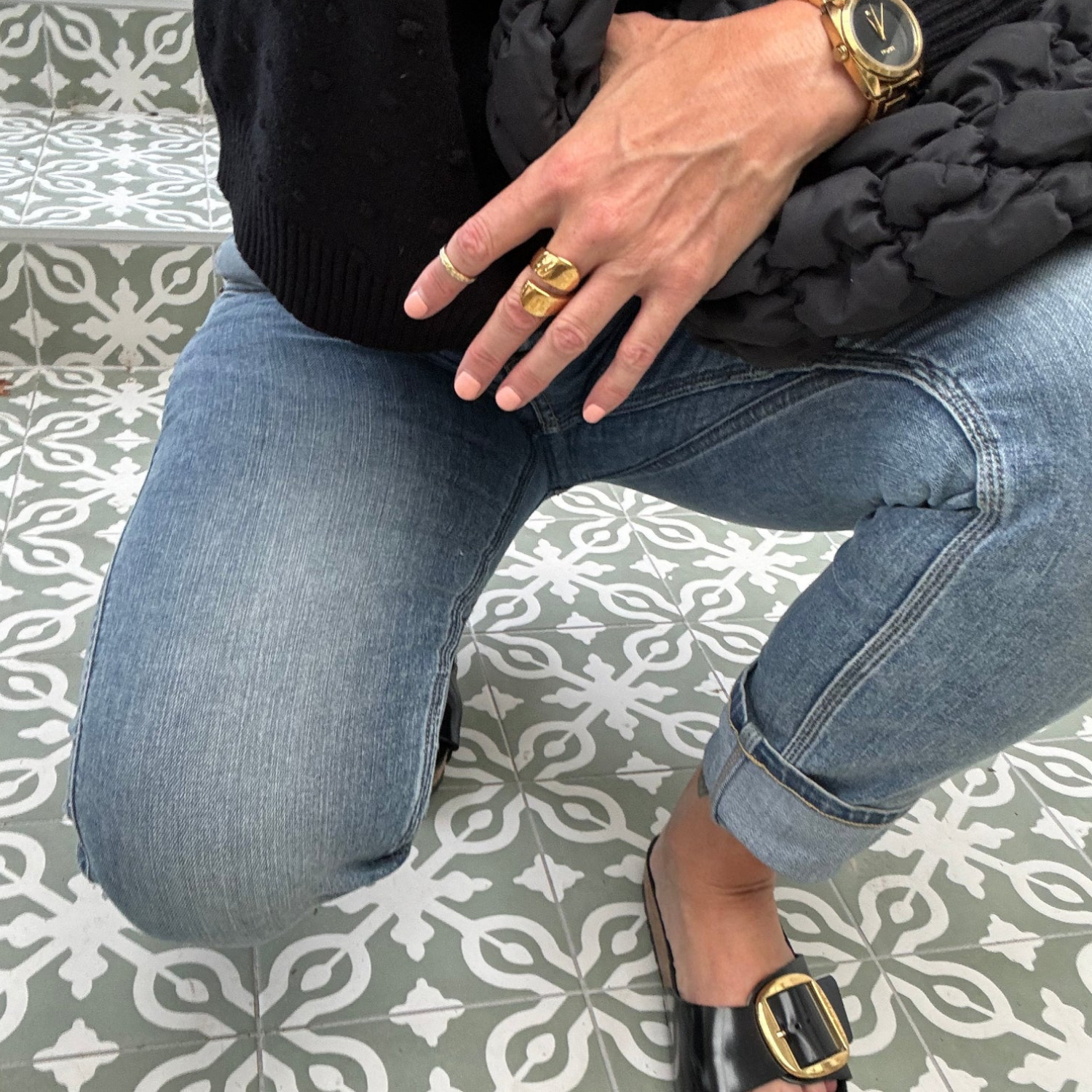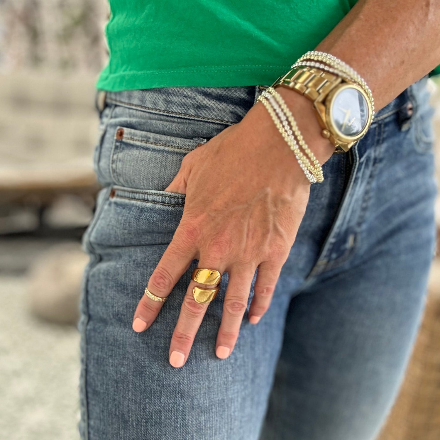 Son style ouvert et arrondi en fait une pièce tendance, idéale portée seule comme statement ou combinée avec d’autres bagues pour un look plus assumé.
