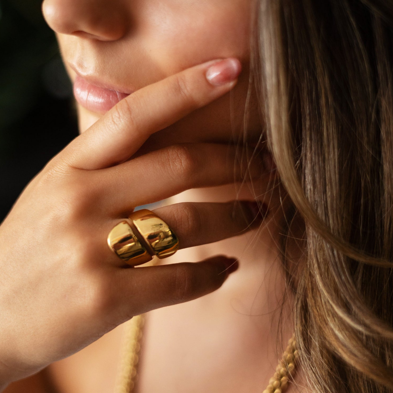 Audacieuse et moderne, la bague Manchette offre un design sculptural qui habille la main avec élégance.