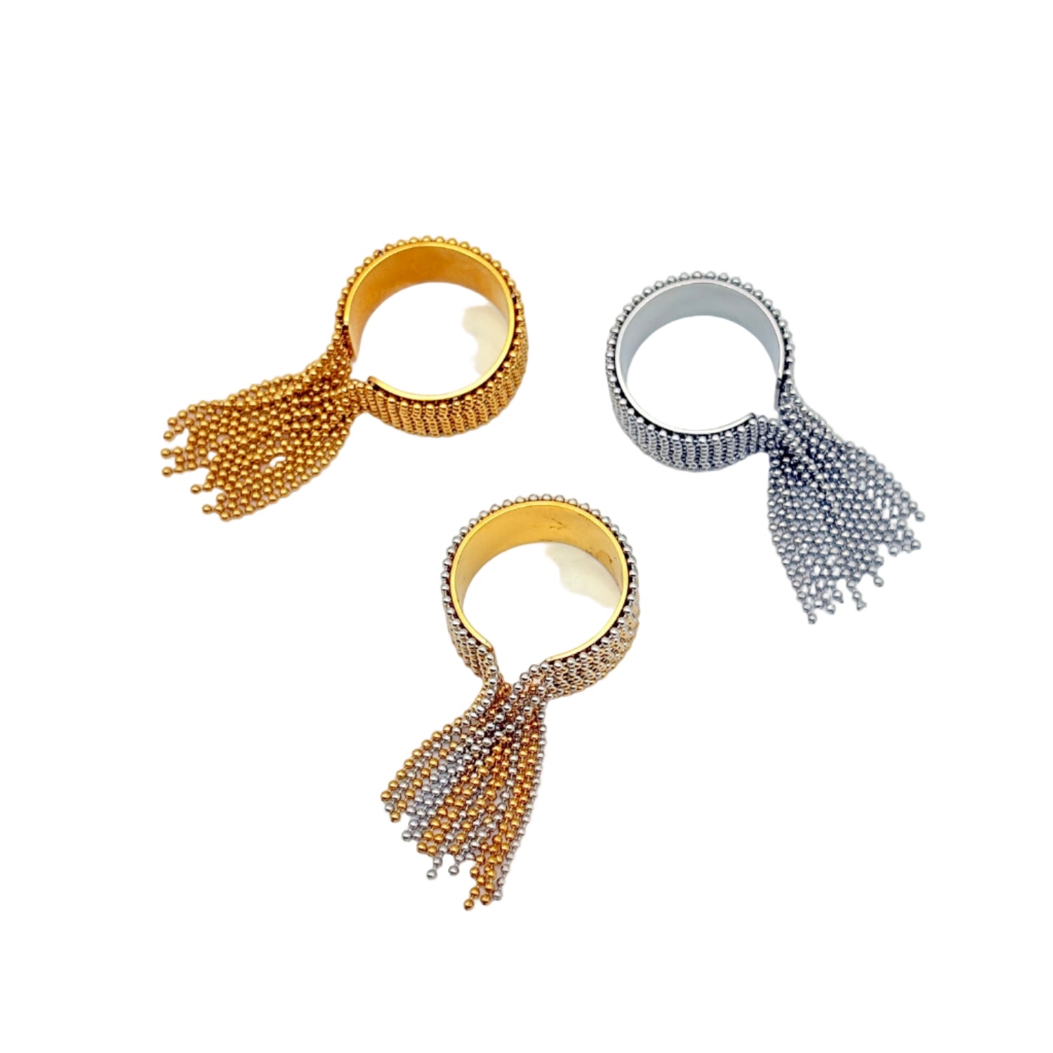Bagues en acier inoxydable 316L au design perlé, offertes en trois finitions : or, argent, et argent/or deux couleurs. Modernes, élégantes et parfaites pour superposer ou porter seules.