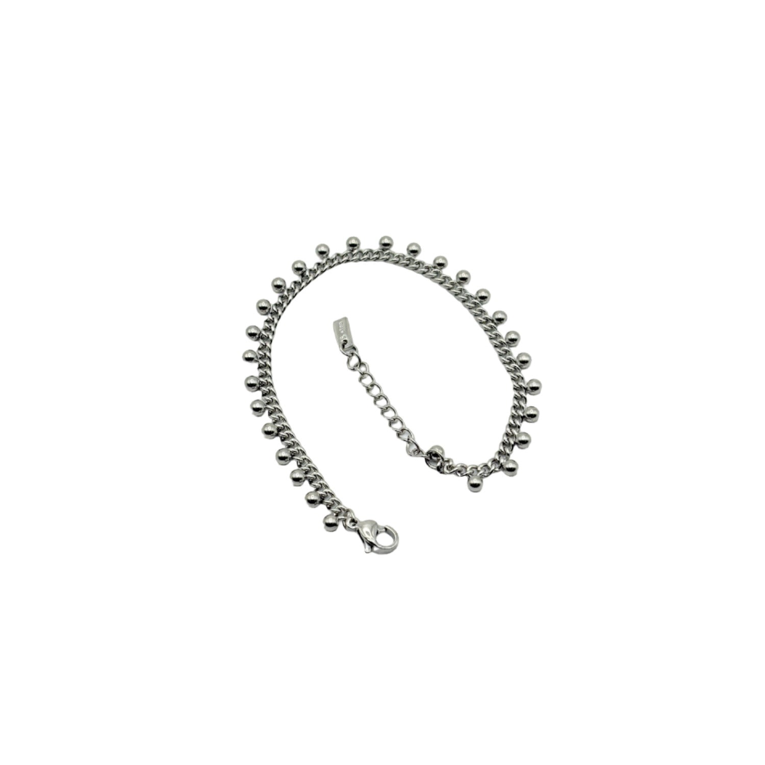 Fin et épuré, le bracelet Sola se distingue par sa délicate rangée de petites billes en acier argenté. Minimaliste mais lumineux, il apporte une touche moderne et subtile à toutes vos tenues — seul ou superposé à d’autres bracelets.