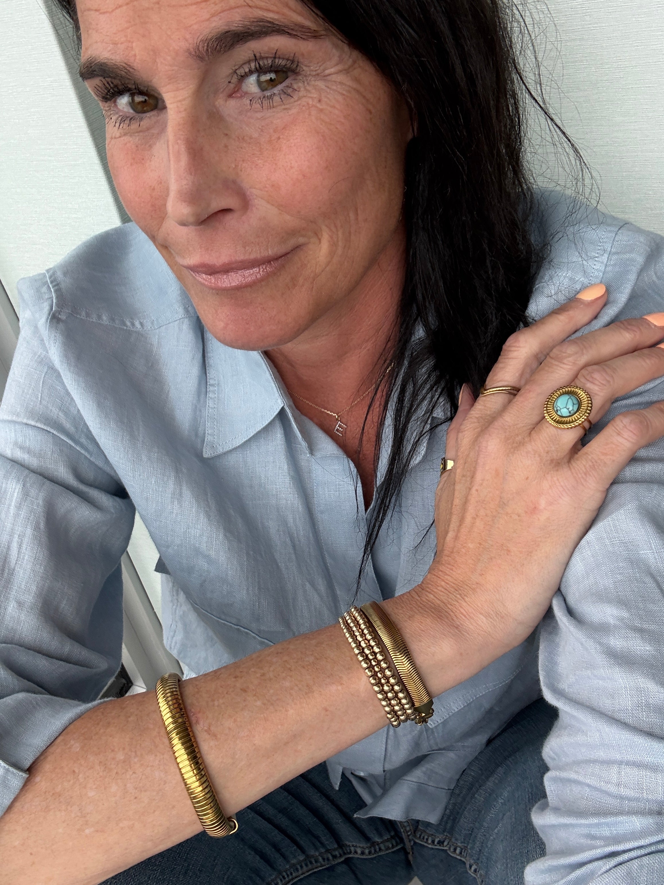 Statement et lumineux, le bracelet Gros Chevron revisite le classique doré avec des maillons imposants au motif en V.
