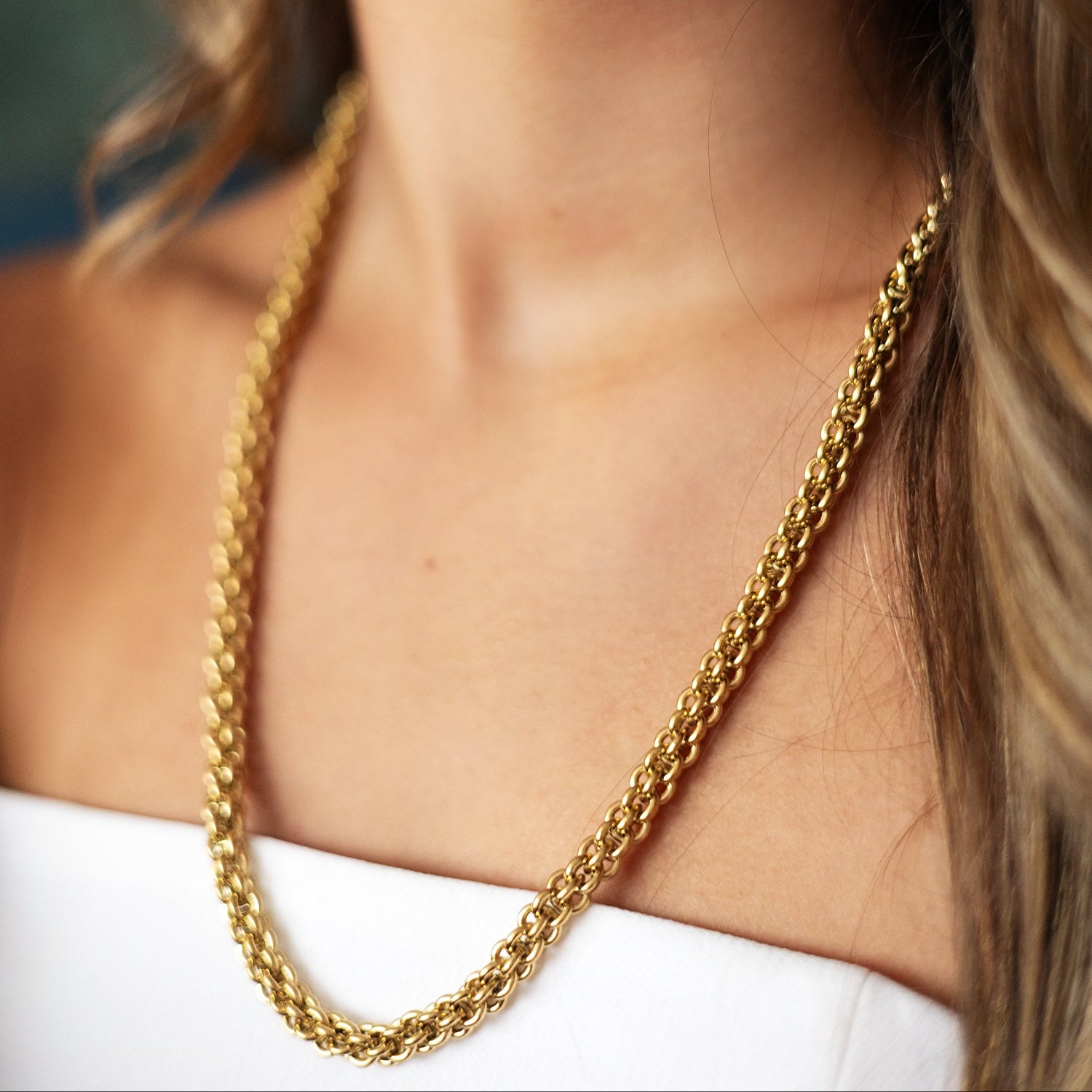 Chaîne épaisse au style assumé, en acier inoxydable doré à l’or 18K, pour une allure moderne, élégante et audacieuse.