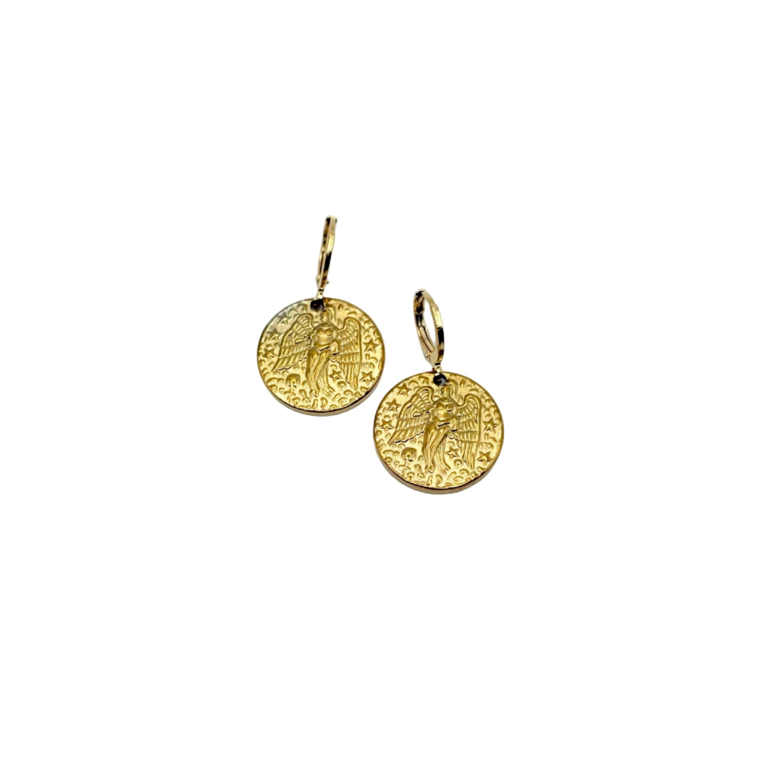 Leur design doré, orné d’une breloque ange délicatement gravée, capte la lumière avec grâce et s’impose comme un talisman d’énergie et de douceur.