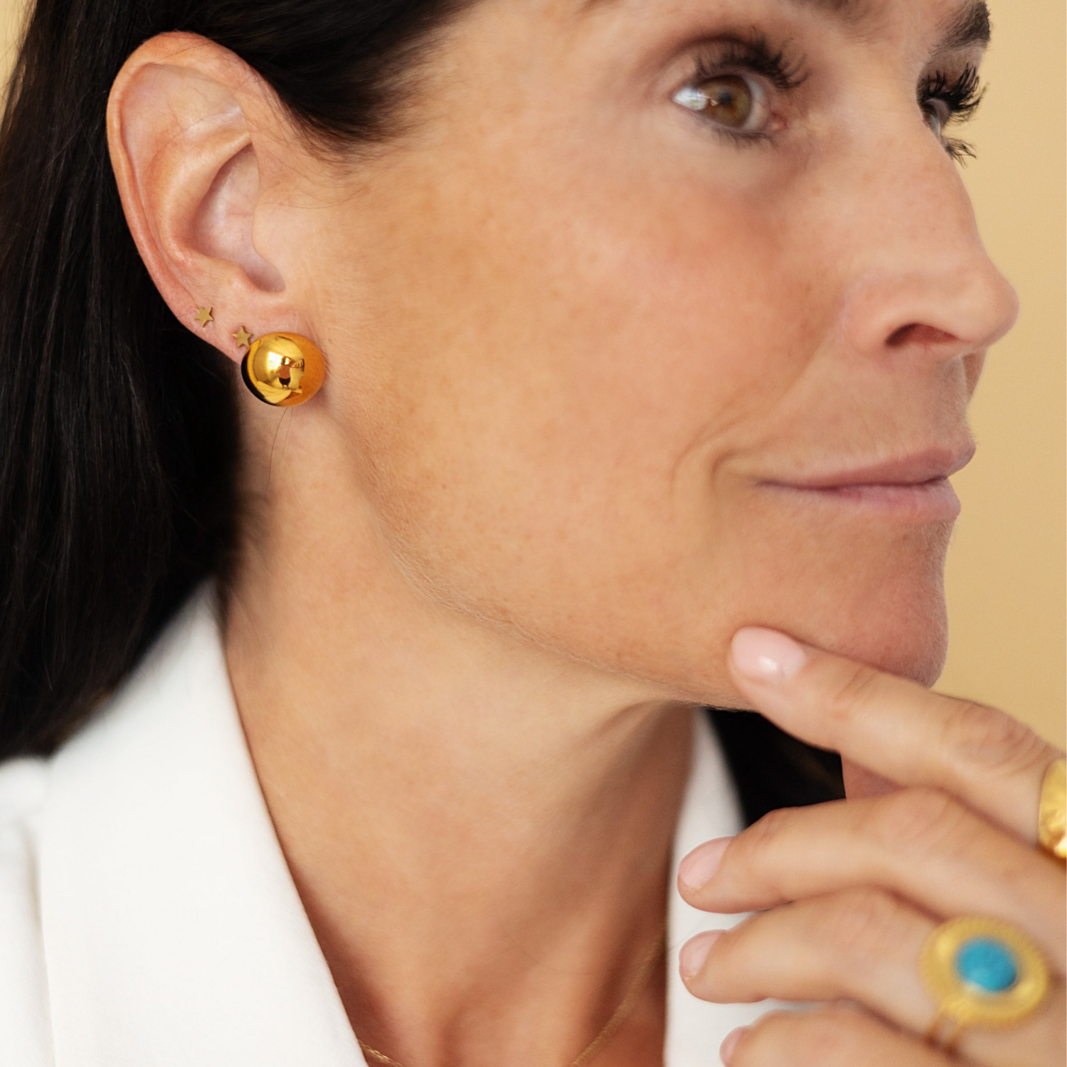 Un style épuré et urbain avec ces demi-sphères minimalistes en acier inoxydable, disponibles en deux finitions élégantes : couleur argent inoxydable ou or. Parfaites pour apporter une touche moderne et intemporelle à tous vos looks.